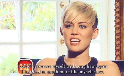 Then in august 2012 we see Miley completely wipe the slate clean of her old self as Hannah and create a new image. Miley Cyrus was always known for her long gold blond hair and then in August she had the buzz cut and had it all chopped off. She stated that “ I could never see my self again with long hair again I just feel so much more like myself now” This was the start to the completely new Miley of which we know today as poll dancing, twerking and appearing in her music video nude.